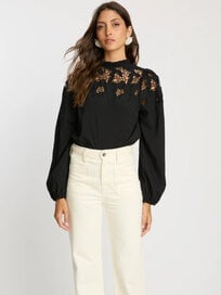 Elegant with a modern edge, the Riana Top in is a versatile piece designed to elevate everyday dressing. Crafted with delicate floral lace detailing across the yoke and shoulders, it offers a subtle sheer contrast that feels both refined and feminine.