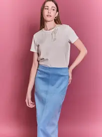 Rendered in a crisp, clean Cream with subtle tonal stripes, this top reinvents the classic button-down through a lens of modern comfort. It’s the perfect solution for the woman who wants the polished look of a shirt with the ease of a casual tee.