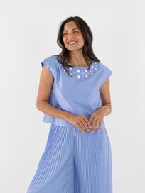 With slightly puffed sleeves and a clean button-front silhouette, the new Kendra blouse makes a subtle statement while delivering instant polish. We love it styled with Lander shorts or jeans for a look that feels refined and versatile for everyday wear.