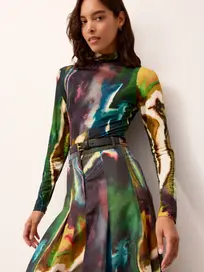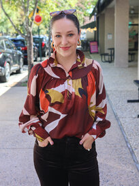The Lolli Sweater showcases a stand collar with a notched neckline & blouson sleeves finished with ribbed cuffs. Knit directly into the fabric, the embroidered Lone Star icons bring western-inspired flair, from boots and longhorns to and bluebonnets.