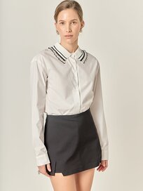 The Sloane Knit Pearl Collared Sweater elevates the everyday with a relaxed fit, deep V-neck, and a pearl-trimmed collar that feels effortlessly chic. Crafted from luxe cream rib knit, it’s the sweater you’ll reach for again and again.