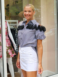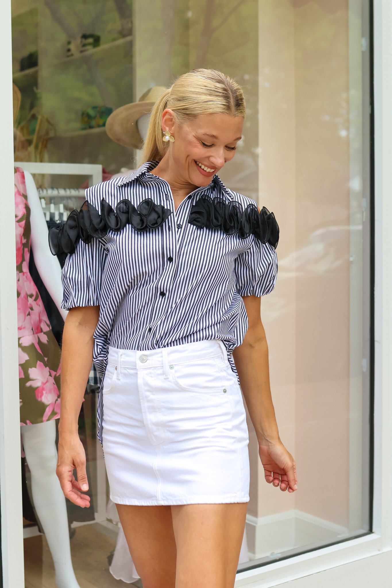 A beautiful cold shoulder blouse by Jessie Liu!