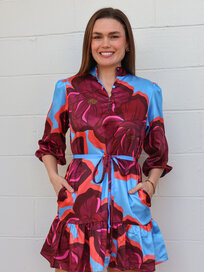 Crafted from lightweight cotton voile, this silhouette balances a delicate smocked bodice with a fluid, tiered skirt for effortless movement. The vibrant teal palette and intricate floral patterns create a versatile, resort-forward look.