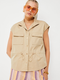 This versatile tank features a crew neckline and functional placket with our signature gold buttons imported from Italy. Do it all the way up for a polished look, or leave it partially open for a perfectly undone vibe. This one comes in Latte Stripe.