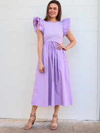 A printed babydoll mini dress featuring a ruffled mock neckline and short puff sleeves with elastic cuffs. Designed with a button-front placket and a relaxed, tiered silhouette. Finished with a softly flared hem for an effortless. 80% Polyester, 20% Cotto