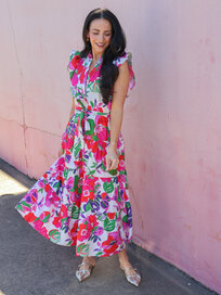Embrace timeless style with the Legacy Dress. This stunning midi features thick straps and a chic floral print, complemented by an O-ring belt for a flattering fit. The center back zipper ensures easy wear. Perfect for sunny gatherings or an evening out.