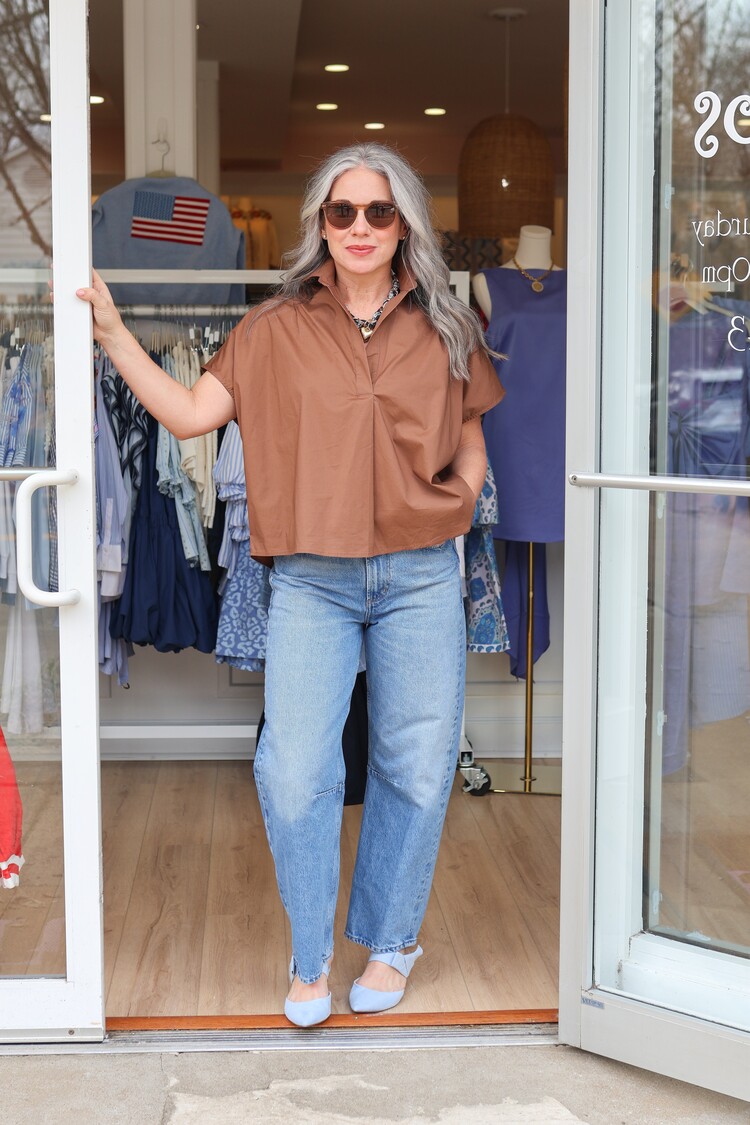 A classic poplin shirt that pairs back with your favorite white or blue denim!