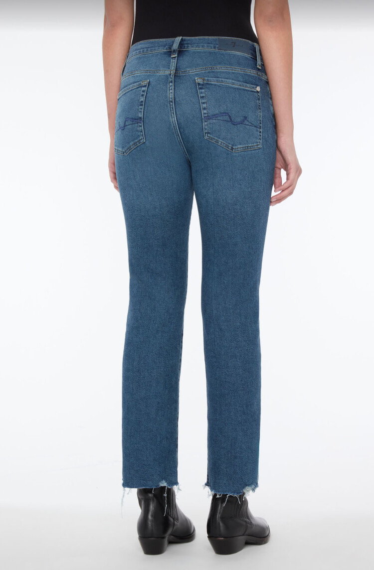 The Isola is a mid-rise cropped bootcut designed for everyday ease. Crafted from soft stretch denim with a lightweight feel, it offers a flattering fit with lasting comfort. The Regency wash—a dark indigo with soft fading, marbling, and whiskering.