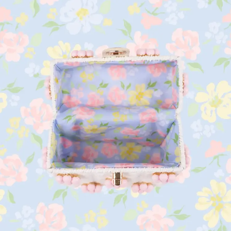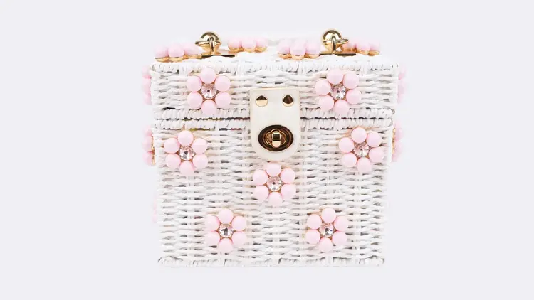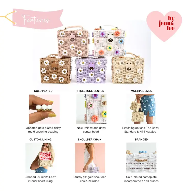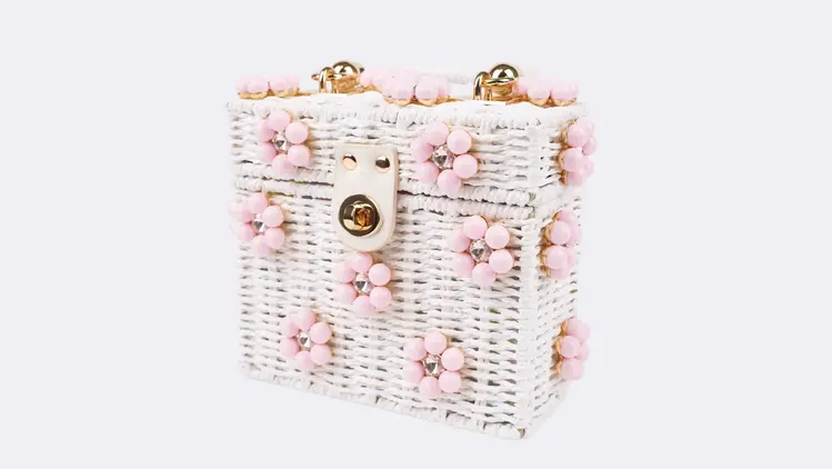• Wicker Bucket Bag with Beaded Flowers | Natural Woven Handbag with bejeweled flowers | Embellished Beach tote Basket with daisies | Straw floral daisy vacation Bag