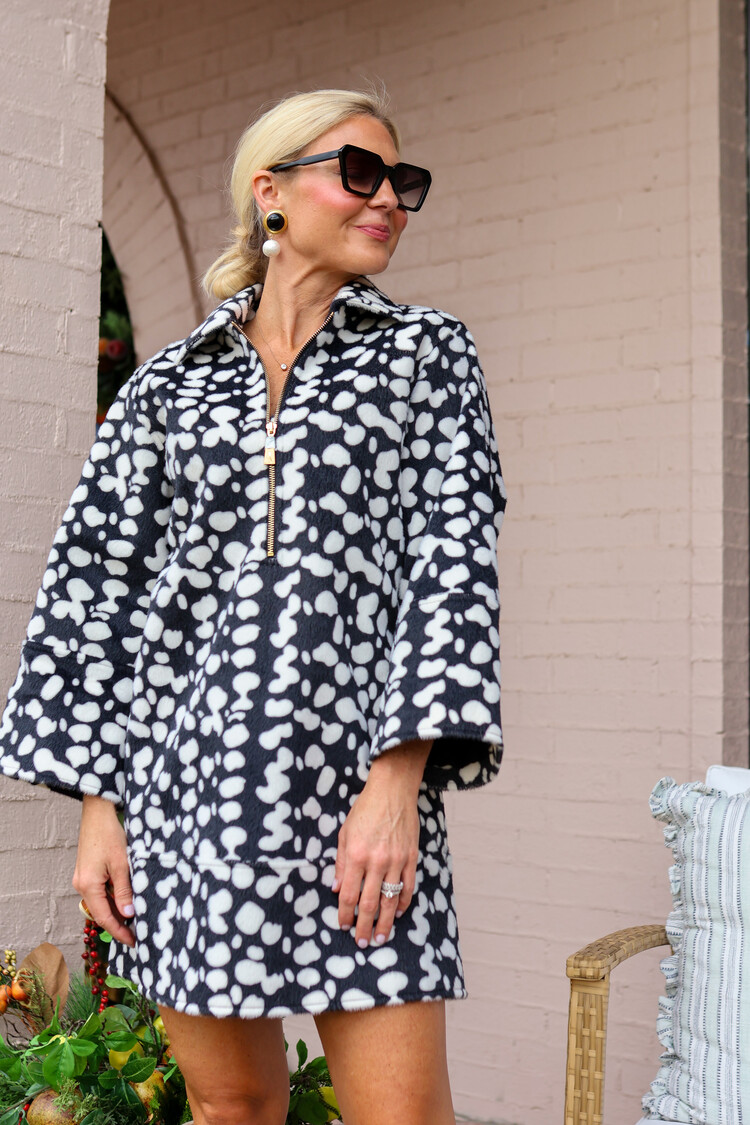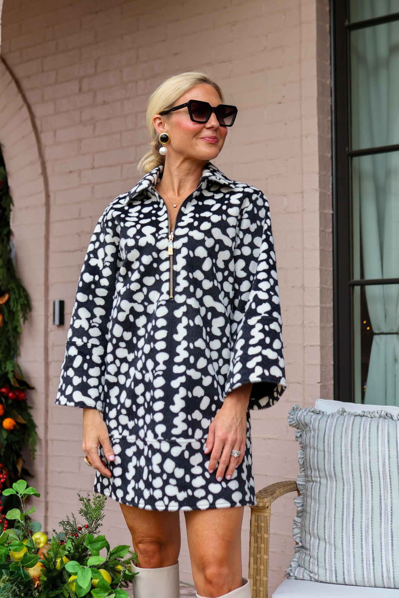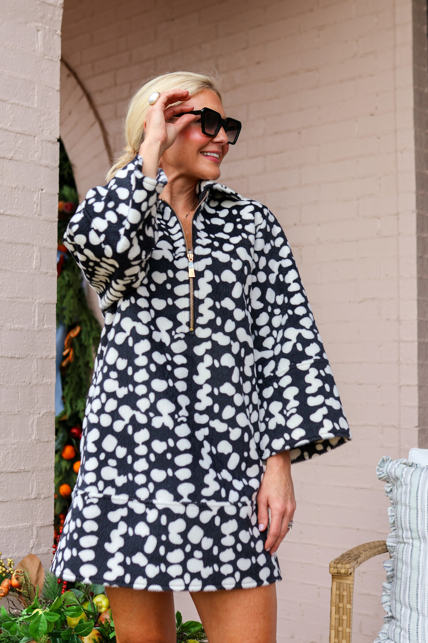 This shift dress offers a flattering collar and convenient pockets. Its striking design pairs beautifully with knee-high boots, perfect for a fall ensemble that turns heads wherever you go. Runs big, size down