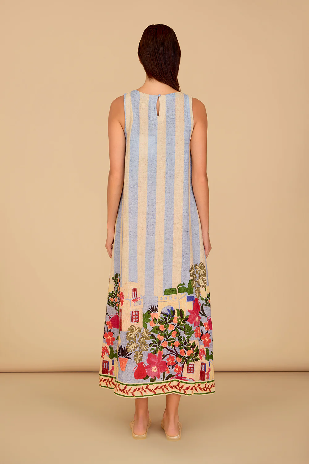 • The Dani dress features a classic A-line silhouette with a structured crew neckline and subtle seam detailing along the sides for shape. The midi length and clean lines offer a polished yet relaxed fit, perfect for versatile wear.