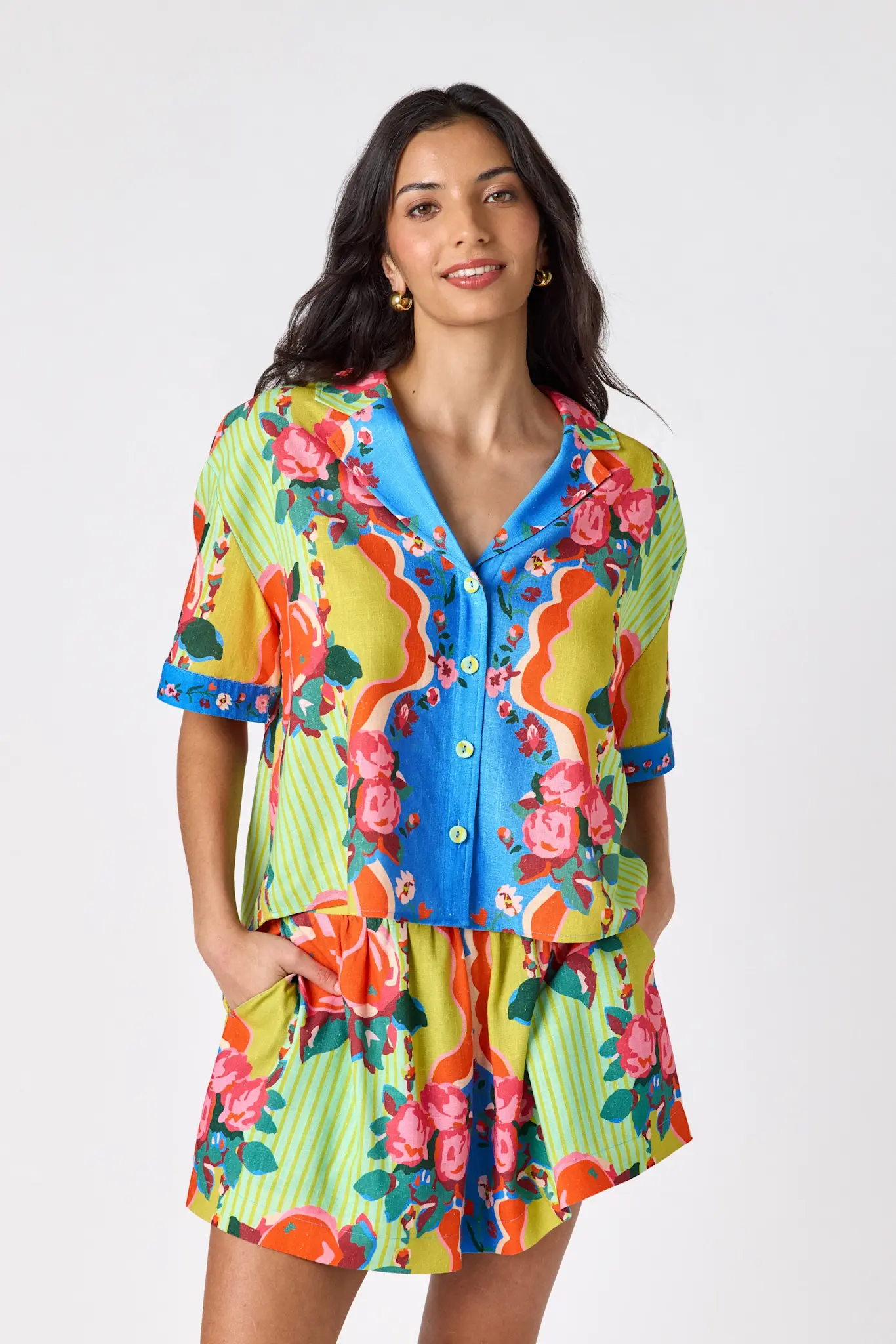 • The Dawson Short delivers effortless style with its relaxed, flowy fit. Finished with a side zipper, elastic back waistband, and pockets, it pairs perfectly with our coordinating tops for a chic spring set.