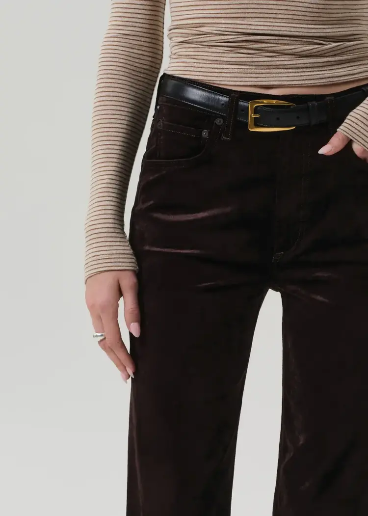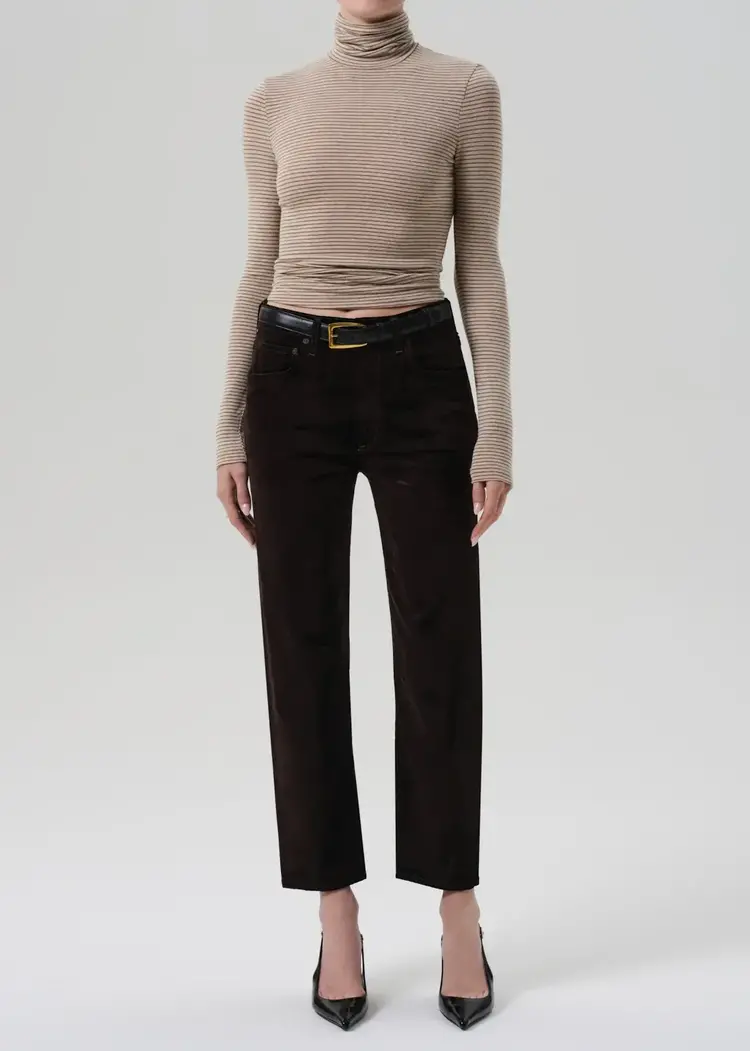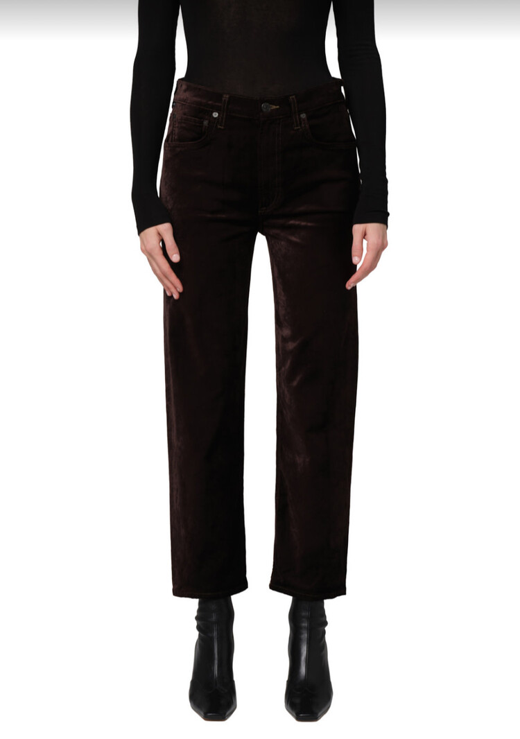 • The ‘Delfina’ is a high-rise straight leg crafted from ultra-soft stretch velvet with a smooth, polished finish. Designed for a flattering, easy fit, it blends everyday comfort with elevated texture.