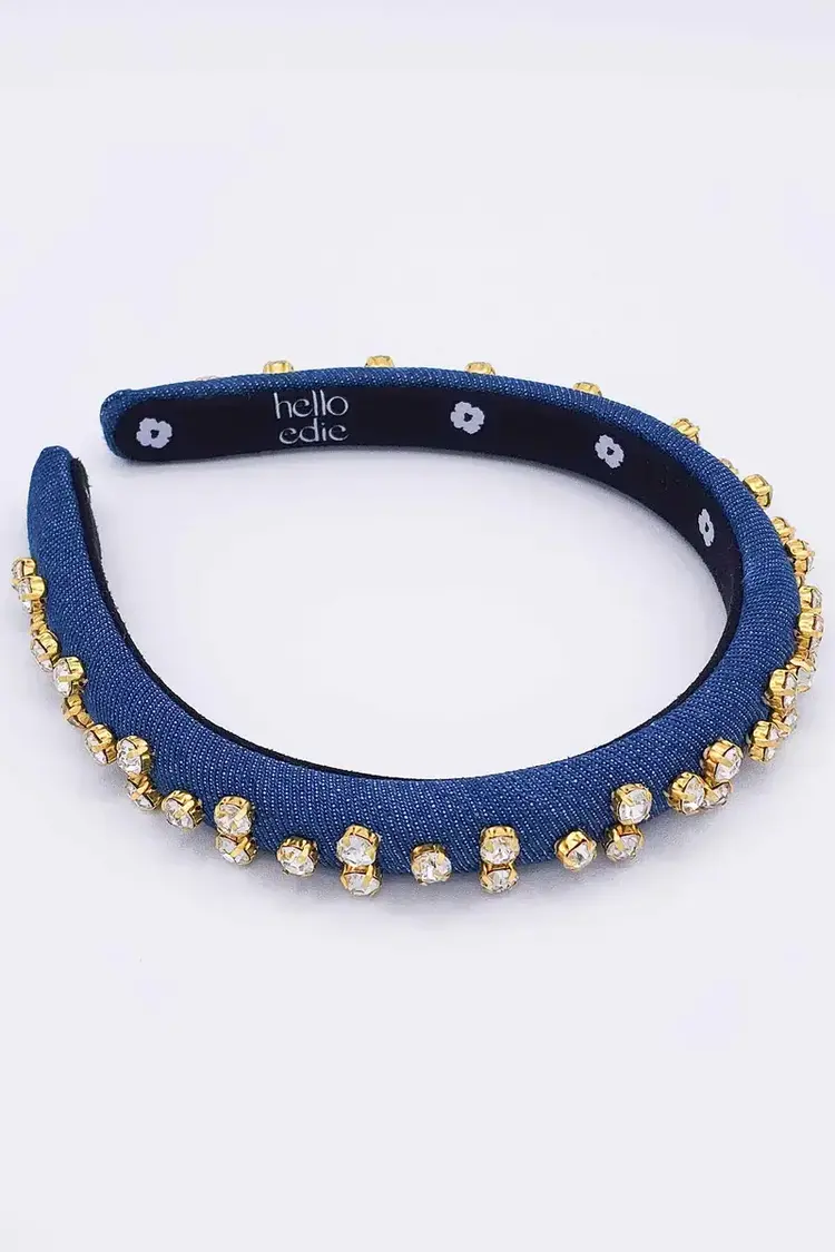 • The denim trend is here to stay! Featuring the perfect medium denim hue adorned with meticulously hand-sewn clear CZ stones for a touch of sparkle. Now available in our sleek ultra-slim silhouette.