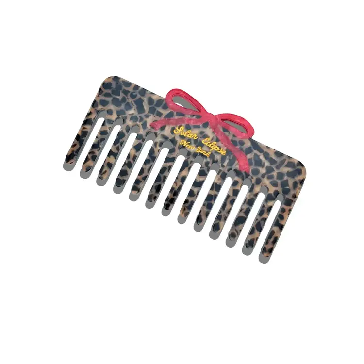 • Designed in New York City & hand painted , this wide-tooth comb gently works through tangles—helping reduce breakage, massage the scalp, and boost circulation. Whether used on wet or dry hair, it glides smoothly for a static-free finish.