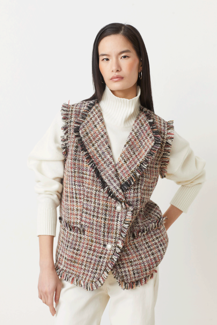 • Tweed Vest with fringe edge and silver buttons.