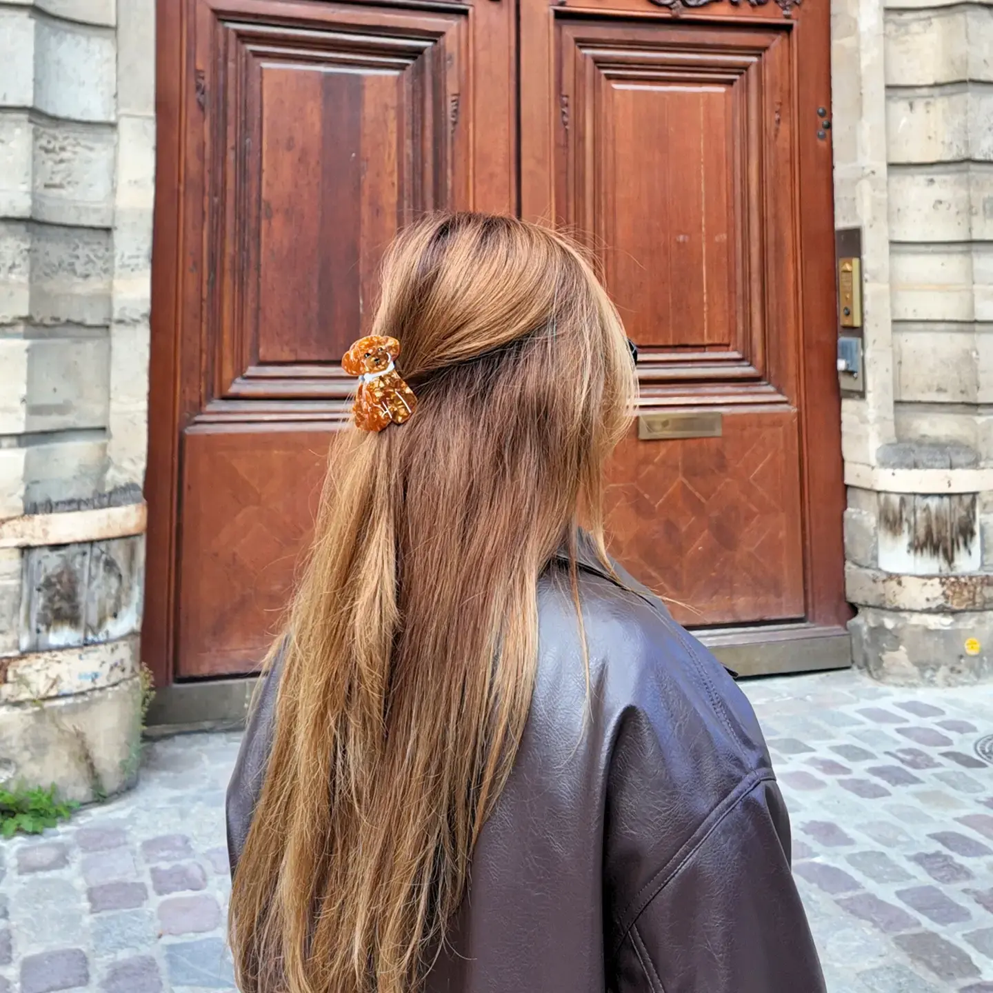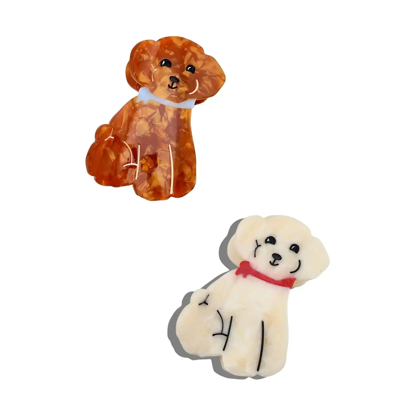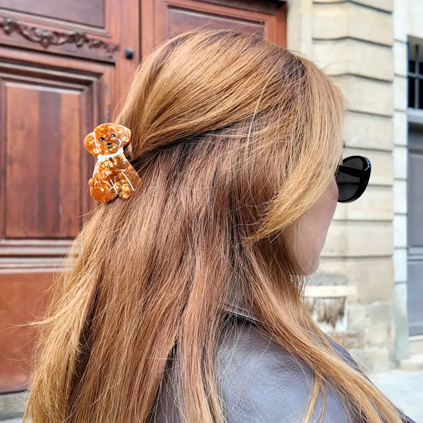 • Embrace fun, effortless style with the Doodle Puppy Claw Hair Clip. Hand-painted by Solar Eclipse artists, this clip features an adorable doodle puppy design in a warm brown hue. Crafted in small batches and designed in NYC.