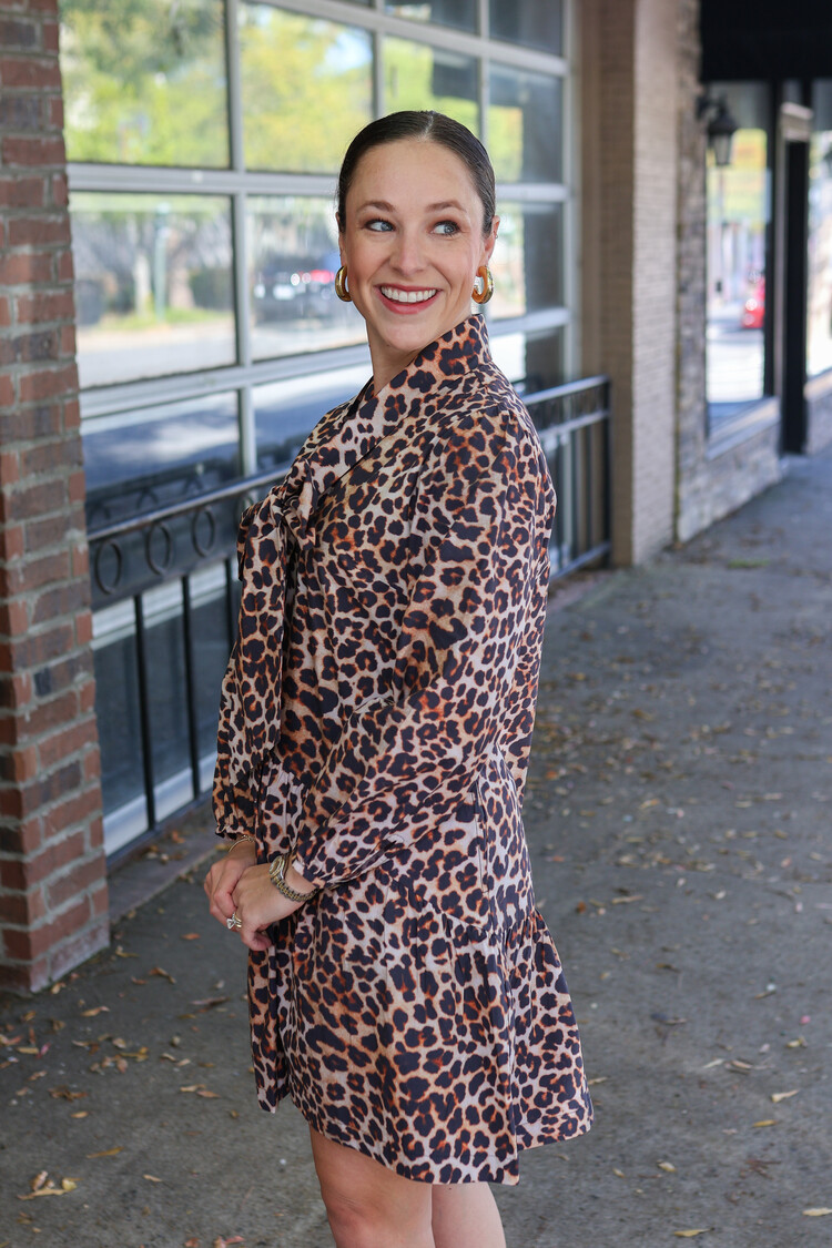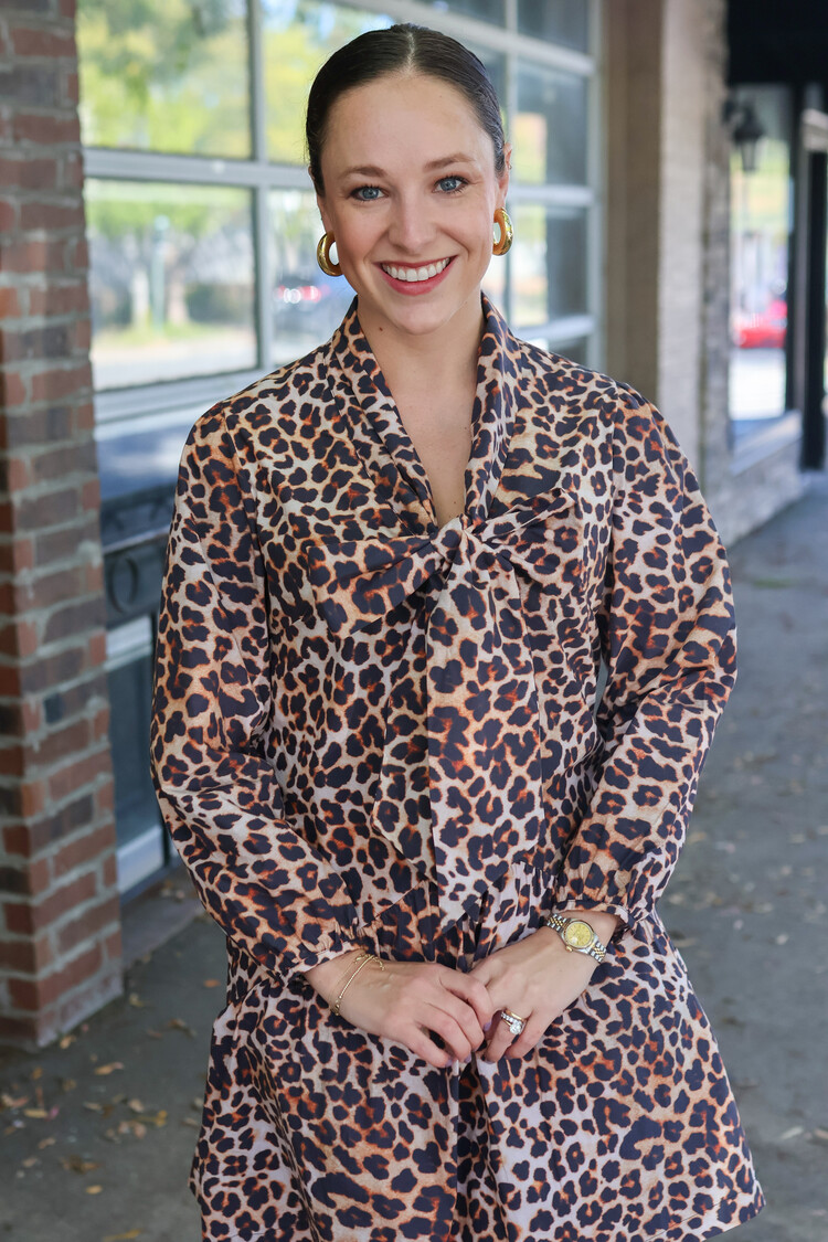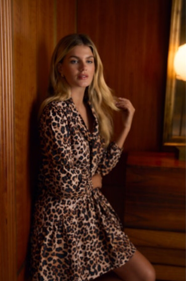 Effortlessly cool with a bold twist, the Loverde Fit-and-Flare Mini Dress makes a statement in our Leopard Brown print. With its asymmetrical hemline, horn button detail, and feminine seaming, this mini offers structure and flair in all the right places.