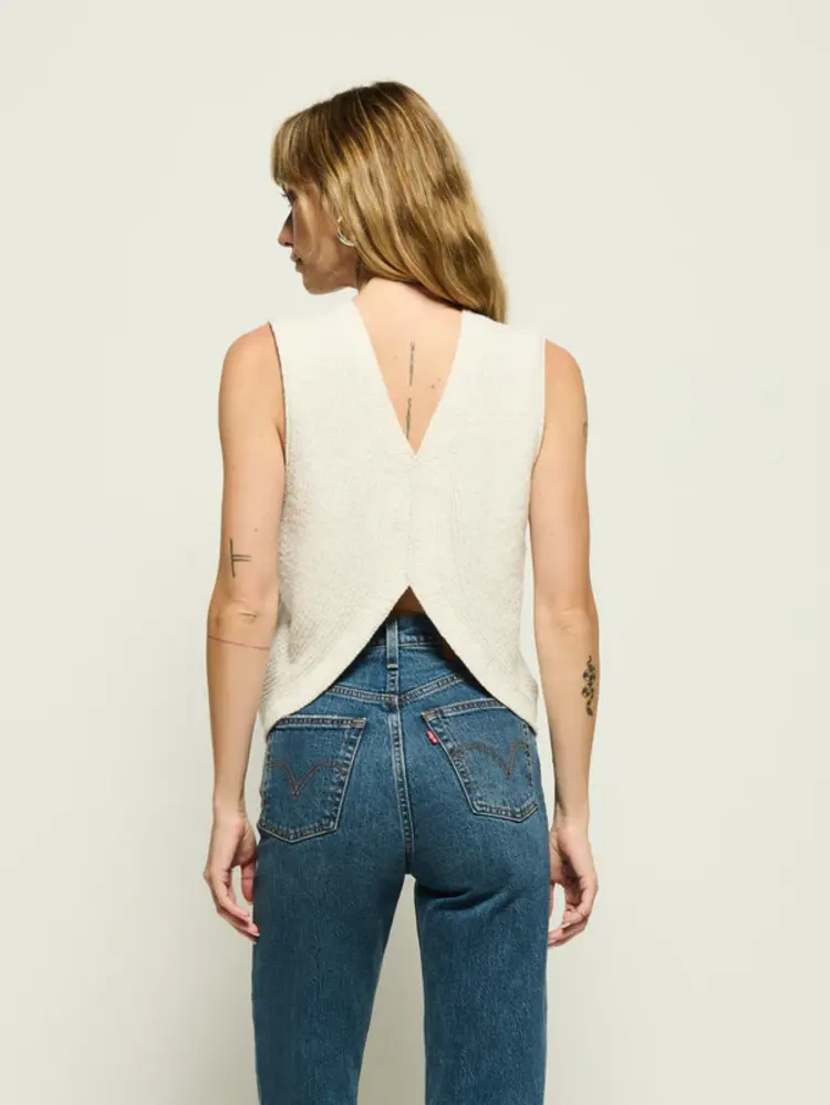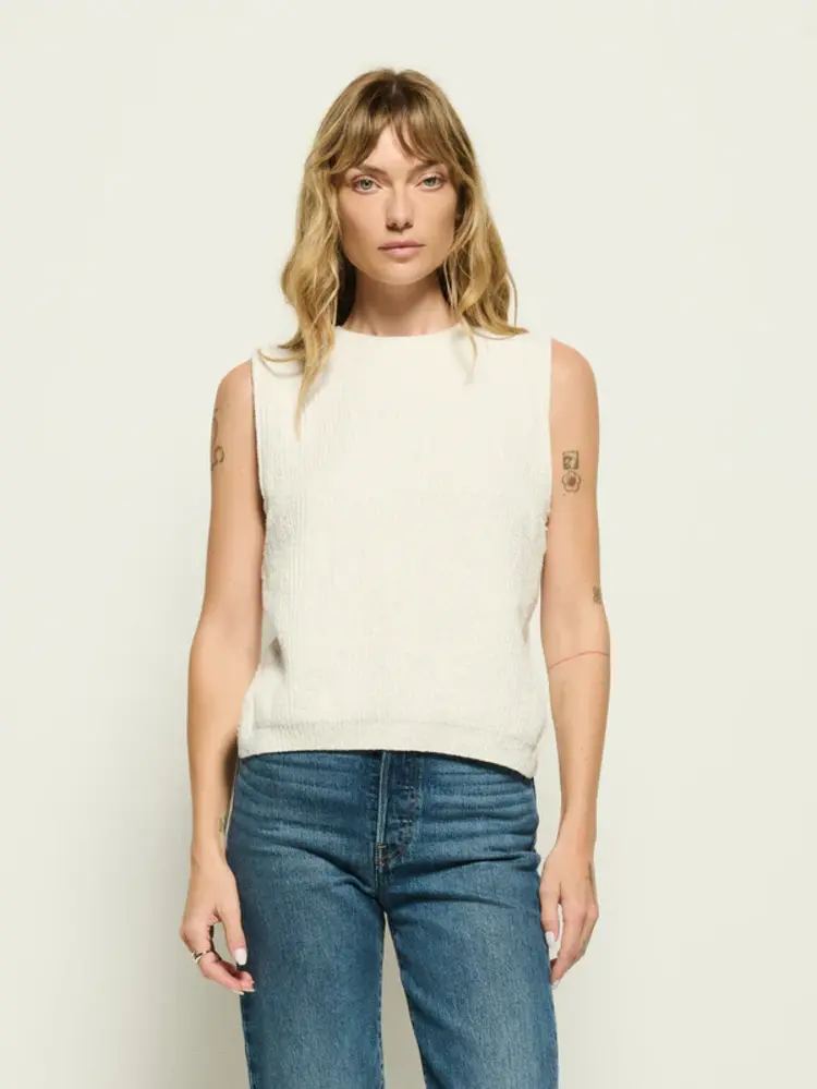 Details like the multicolor vertical knit fabric and tassel hemline elevate our popular Collins tank. In new orange, mint, and peach stripe, Collins adds playfulness and texture to your look. Pair with our new Cleo short in coordinating Primavera floral.