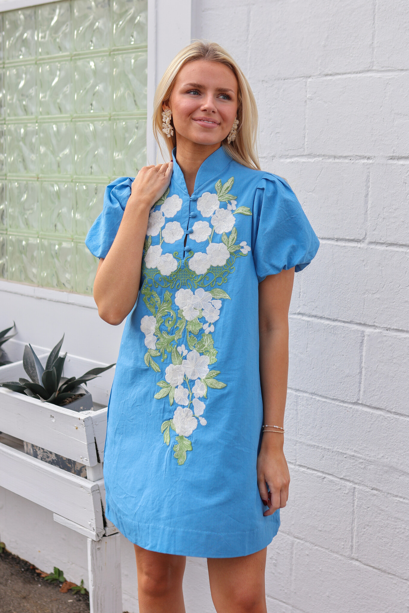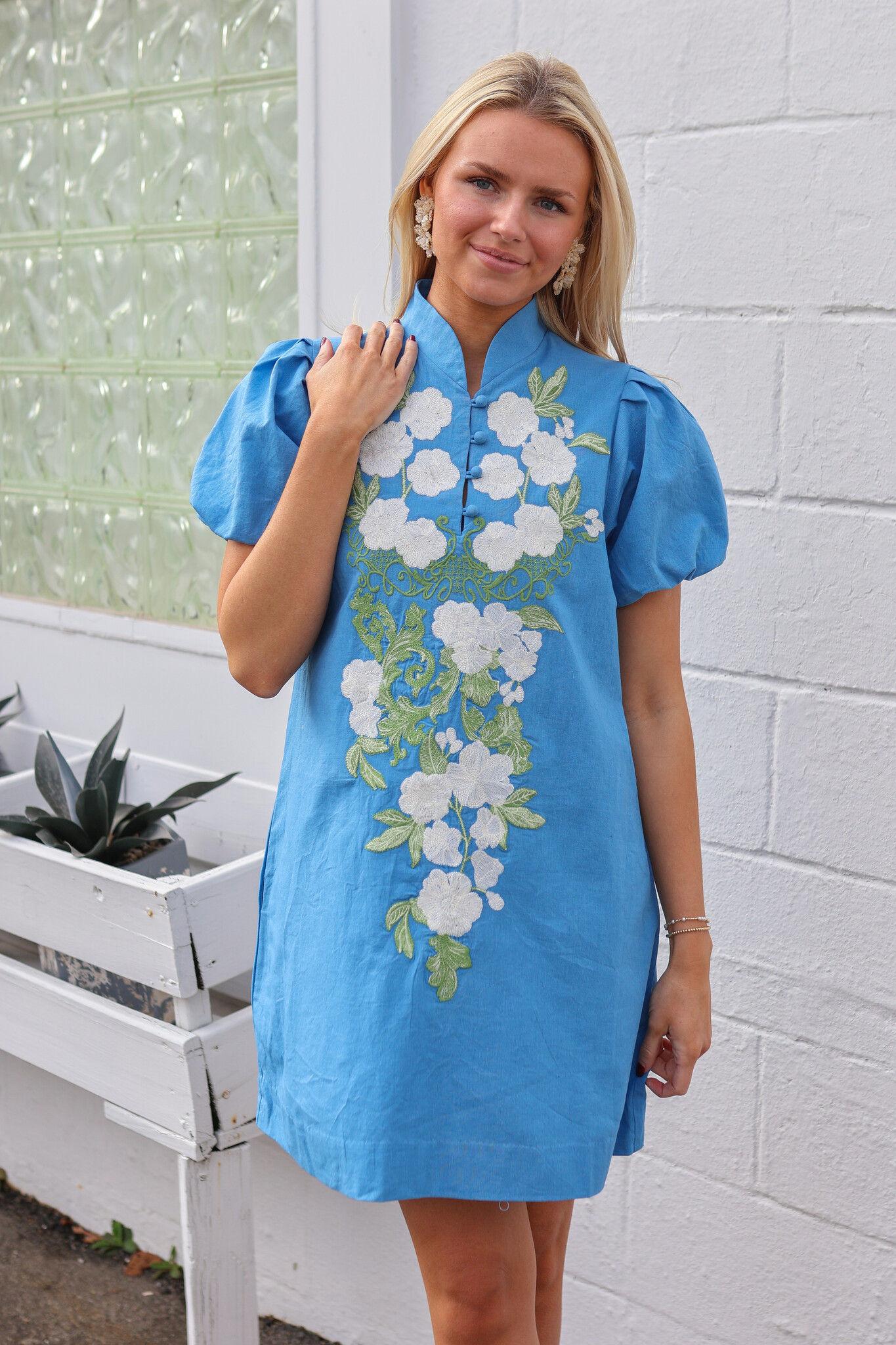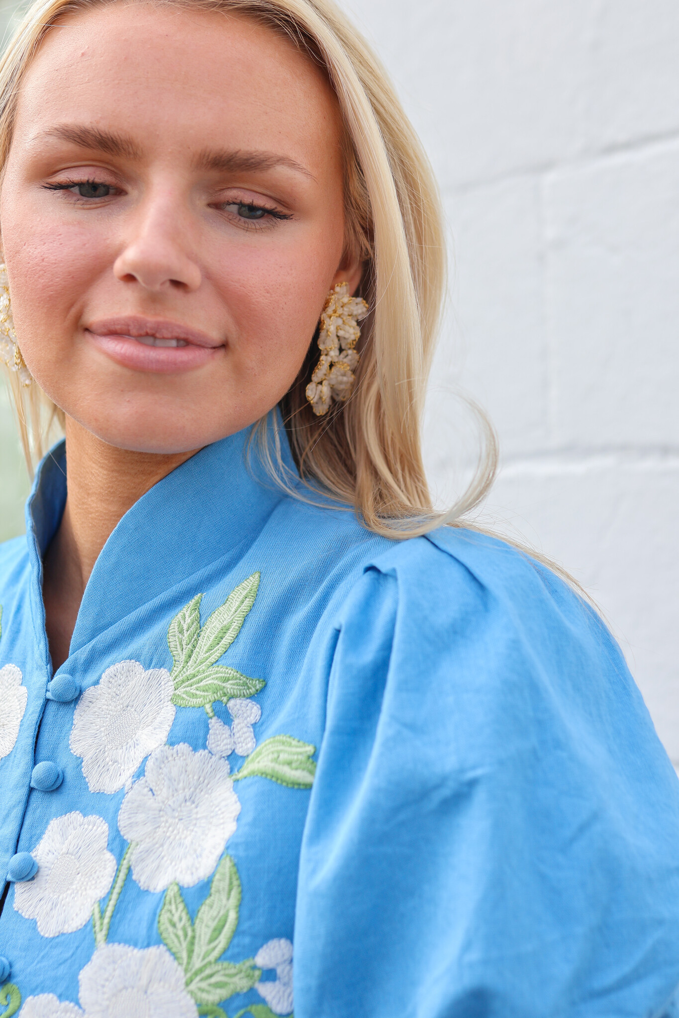Floral embroidery along center front