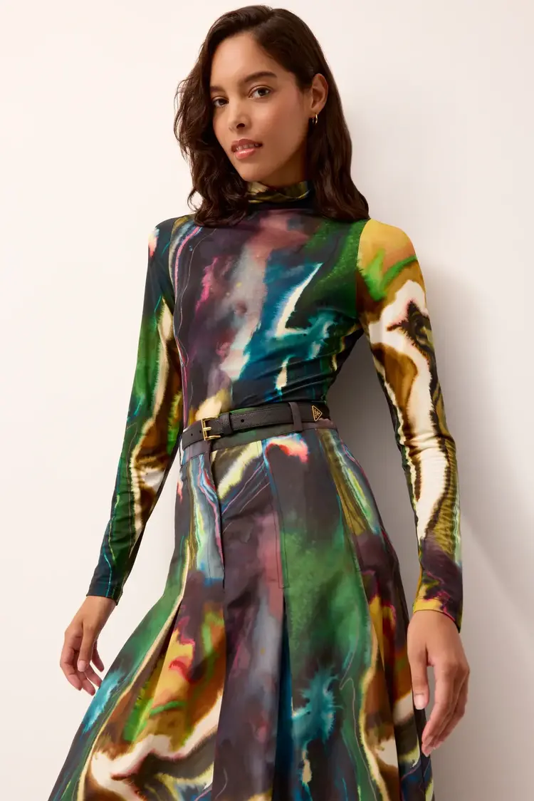 • Cut from a sumptuous jersey knit, Marie Oliver’s figure-skimming Eloise top returns in Delta, a striated swirl of color in a moody seasonal palette. -95% viscose / 5% elastane