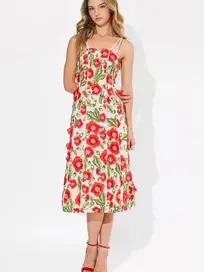The Ivy 3D Floral Midi Dress by Adelyn Rae is an immersive garden of textile artistry. Rendered in a stunning Red Multi colorway, this dress features a vibrant array of scarlet, crimson, and subtle tonal accents that bring the garment to life.
