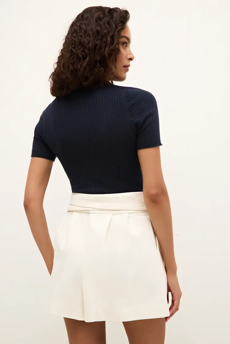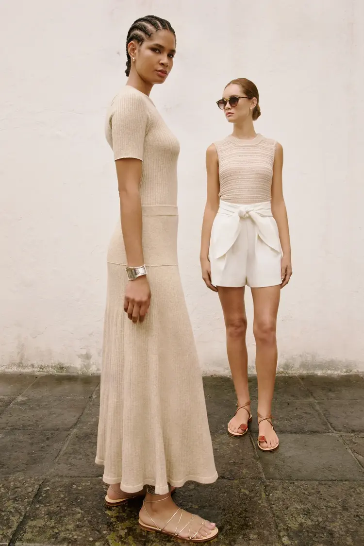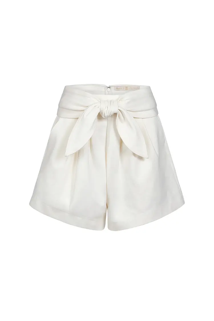 • With a pleated front and wide legs, the dramatic style comes in two staple solids, including this creamy Oyster white, and features an attached trapunto stitch sash belt. To wear: fold the waistband over once, cross in back and tie a knot in front.
