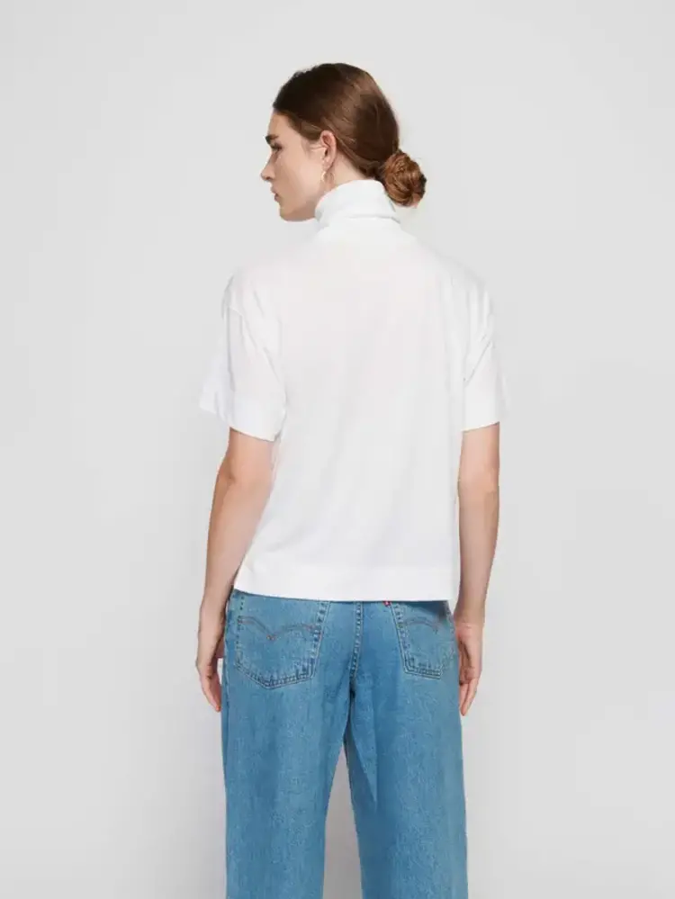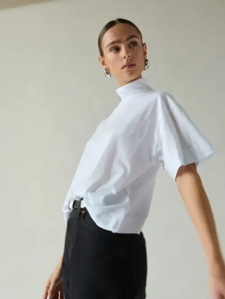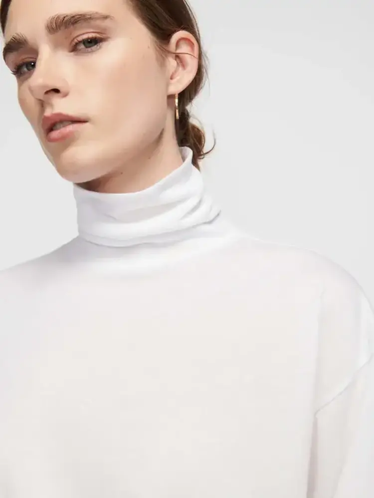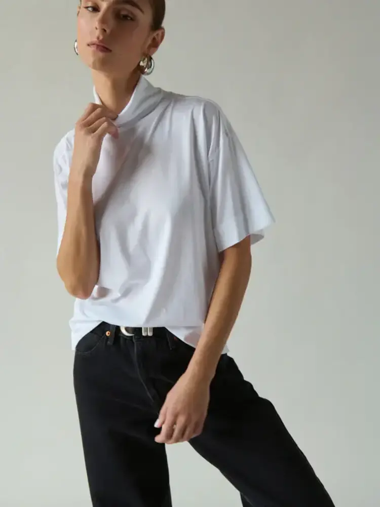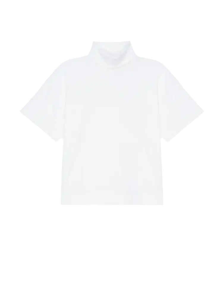 • Your go-to turtleneck met your every day oversized tee. The result? A new, chic essential. A relaxed, straight fit with a dropped shoulder and an easy, boxy silhouette. This one comes in White.