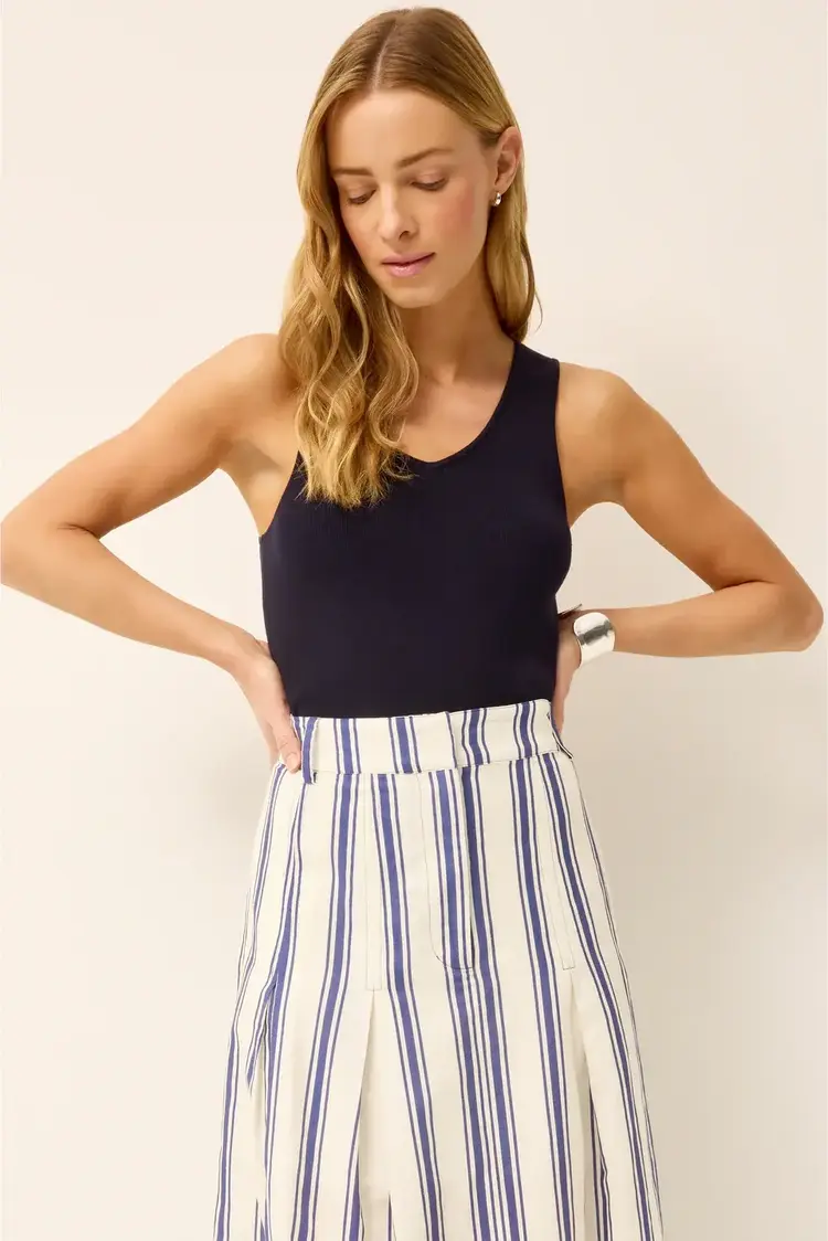 • A wardrobe workhorse, our new Miranda tank is a seasonal essential. Featuring clean lines and a soft, figure-hugging ribbed knit fabric, this chic basic is designed to tuck nicely into skirts and shorts, including statement pieces like our Faith skirt.