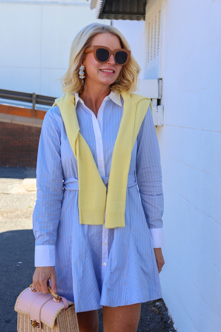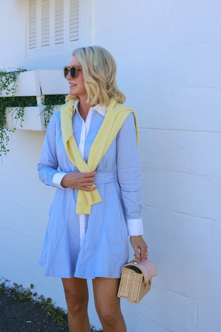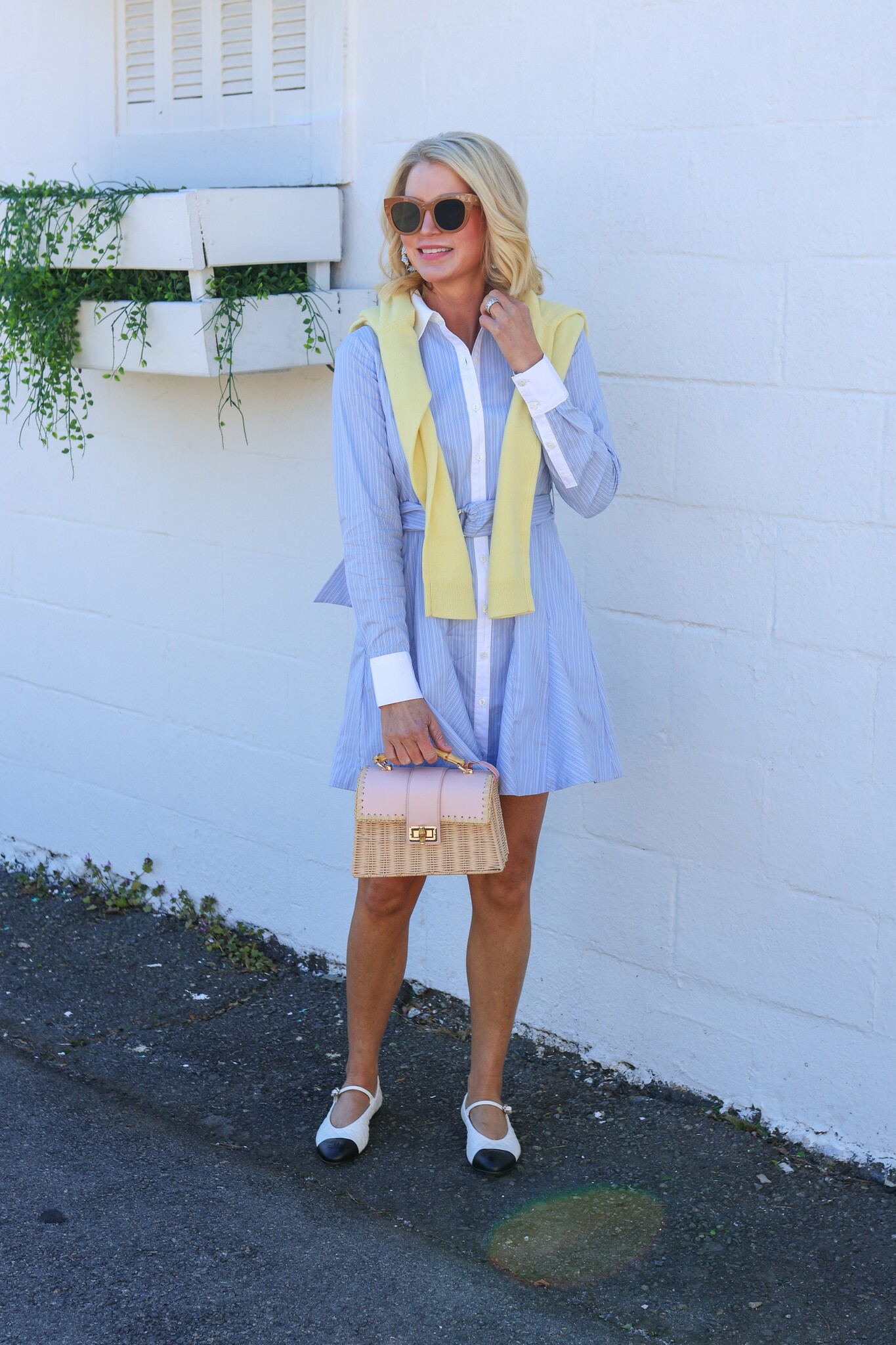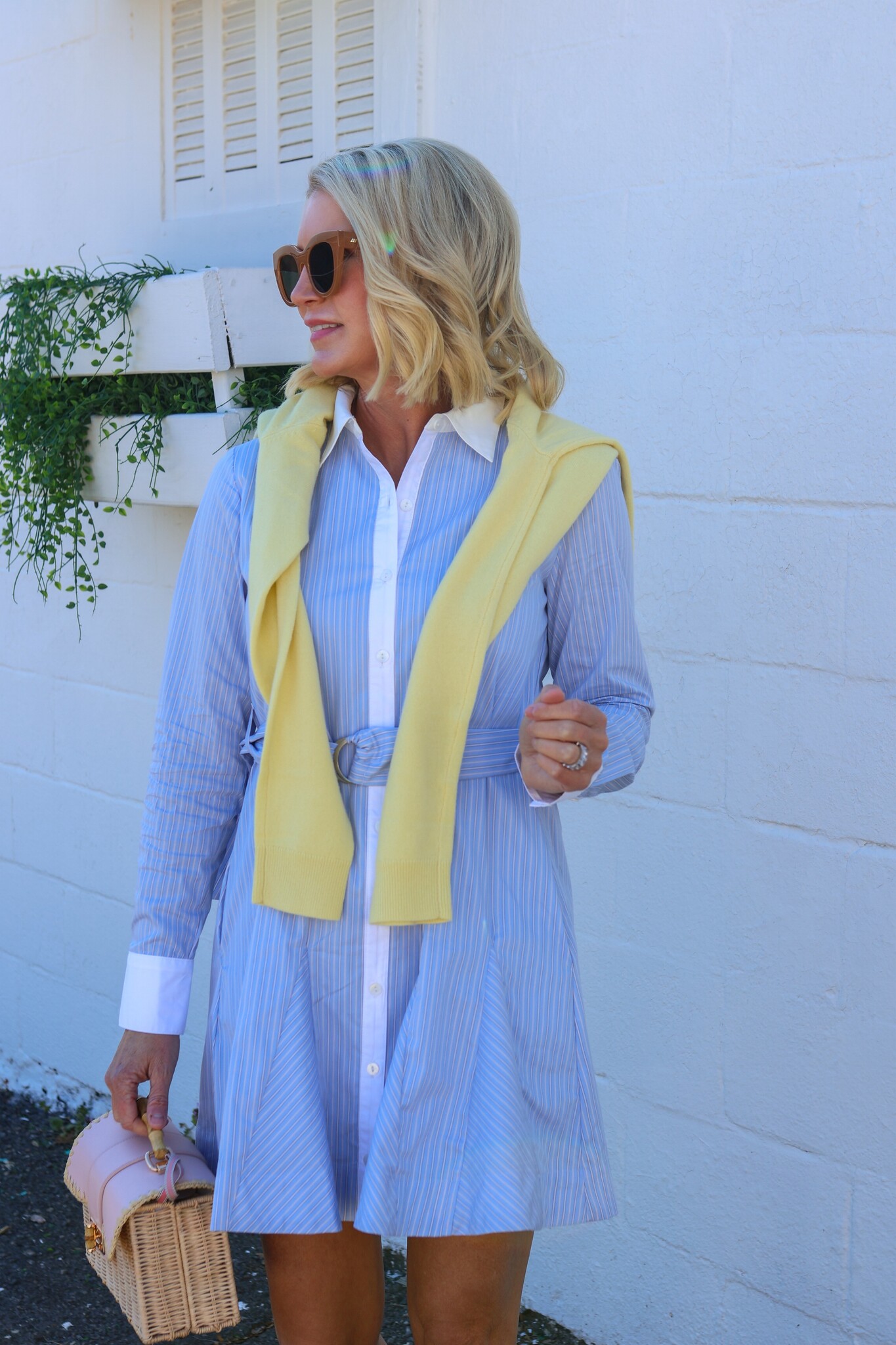 • While the top half maintains the structure of a classic shirt dress—complete with a sharp collar and button-down front—the skirt is elevated by godet pleats. These triangular fabric inserts add unexpected volume and a "swingy" flare to the mini-length hem