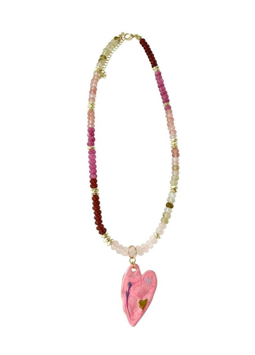 • Adjustable beaded necklace with a heart pendant and 18k Gold detailing
