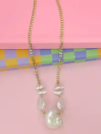 Bring a little mermaid magic to your look with the Shell Yeah Necklace. Featuring a chunky gold chain, pearlescent shell charms, and a stunning spiral centerpiece, this piece is made for beach lovers and coastal daydreamers.