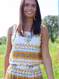 Floral wonder, our Xena romper is the perfect one and done look. The playful playsuit is made from a floral batik cotton fabric. She's soft and breathable, with a button front. Pair Xena with knee high boots for a fall ready look.