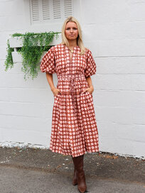 Dawn is a relaxed maxi dress, elevated with a stunning Holiday print, balloon sleeves, and an optional cord belt. She is one of our favorite picks for this time of year, perfect for staying stylish and comfortable throughout the Holiday season.