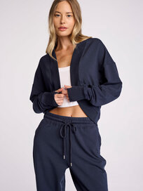 Contrast ribbing at the neck and armholes with a cropped, controlled hem, shirring at the neckline, and of course one of our signature gold buttons at the back. Style tip: pair with your favorite denim or make it a set with our Reece Sweatpant.