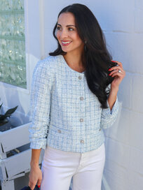 Featuring a contrasting trim and a fun green falcon printed silky lining, our Alpen Jacket is a timeless classic. Pair with your trousers and a crisp white button down for the office, and then white jeans and a tee for an effortlessly chic weekend look.