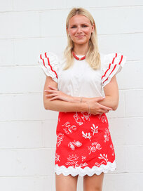 Turn up the charm with the Salome Red Mojito Skirt by Prosperina, a vibrant statement piece inspired by sun-drenched days and tropical escapes. Designed in a playful mojito print, this skirt brings a burst of summer energy to any outfit.