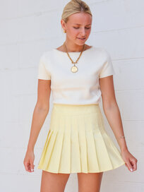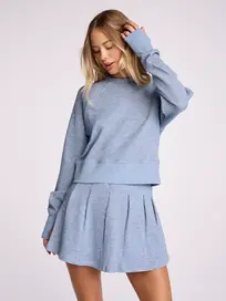 Introducing our newest fabric: Lux Thermal. The Gavyn skirt features a pull-on rib waistband, a flirty pleated body, and an inner shorts lining. The perfect not-so-cheeky length, Gavyn is great for on-the-go styling. styled as a set with the Dara pullover