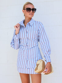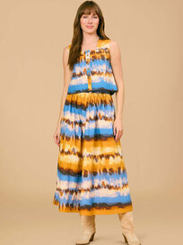 The Tiered Maxi Skirt in Americano brings bold, patriotic fashion to summer styling. Crafted in crisp cotton poplin, its color-blocked tiers create playful movement and volume, while the elastic waistband offers a comfortable, figure-flattering fit.