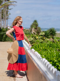 The Hatti Tank in Sunset Stripe is a playful yet polished standout, designed to bring bold color and lightweight structure to your wardrobe. Featuring cap sleeves and a boxy, loose-fitting silhouette, this top offers a modern edge with effortless ease.