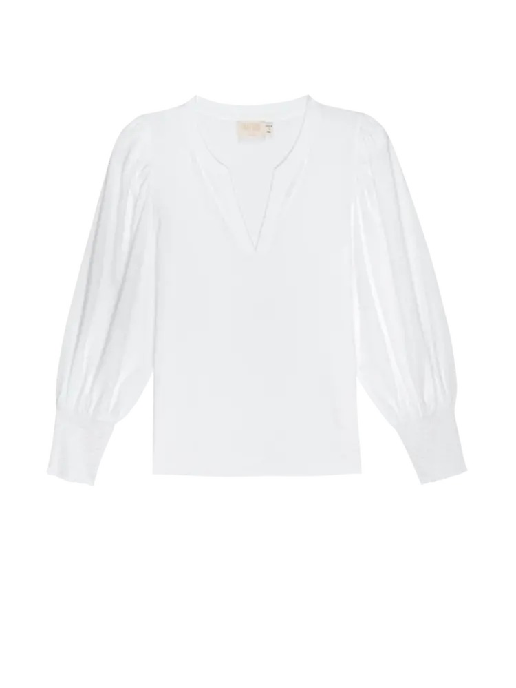• When your favorite features of the Loren tee (the exaggerated shoulders, the chic smocked cuffs) meet the ease of a notched neckline, you get your new go-to for… everywhere.
