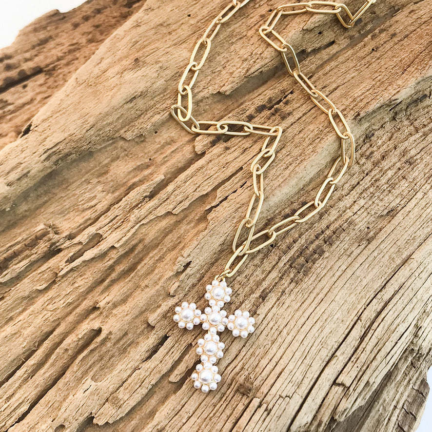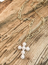 • Lg Paperclip 18" With Pearl Flowered Cross
