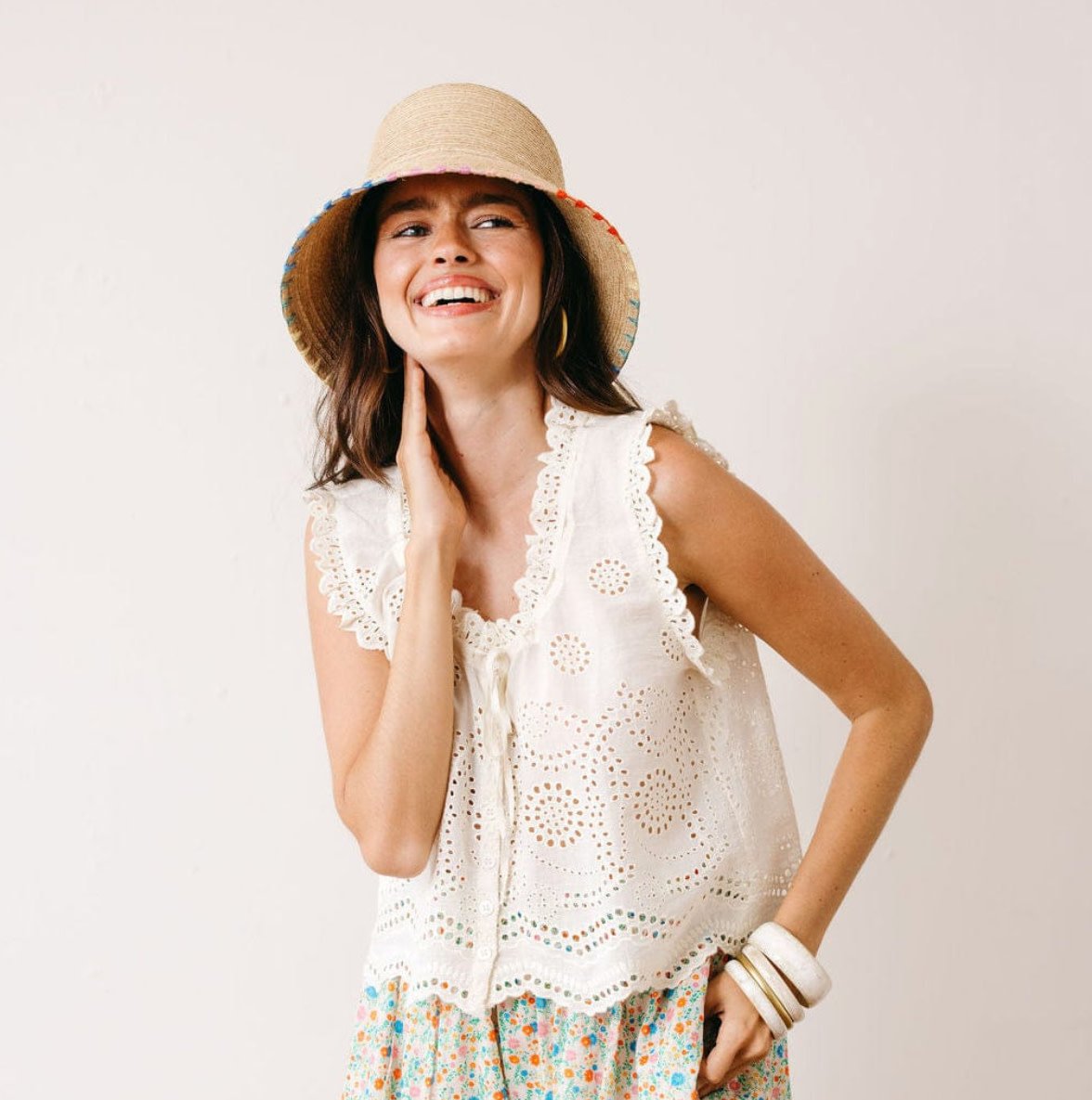 • The Gabriela Bucket Hat features colorful whipstitching along the brim and is a part of our sustainable, fair trade hat collection and rated UPF 50+, the highest possible UV protection.