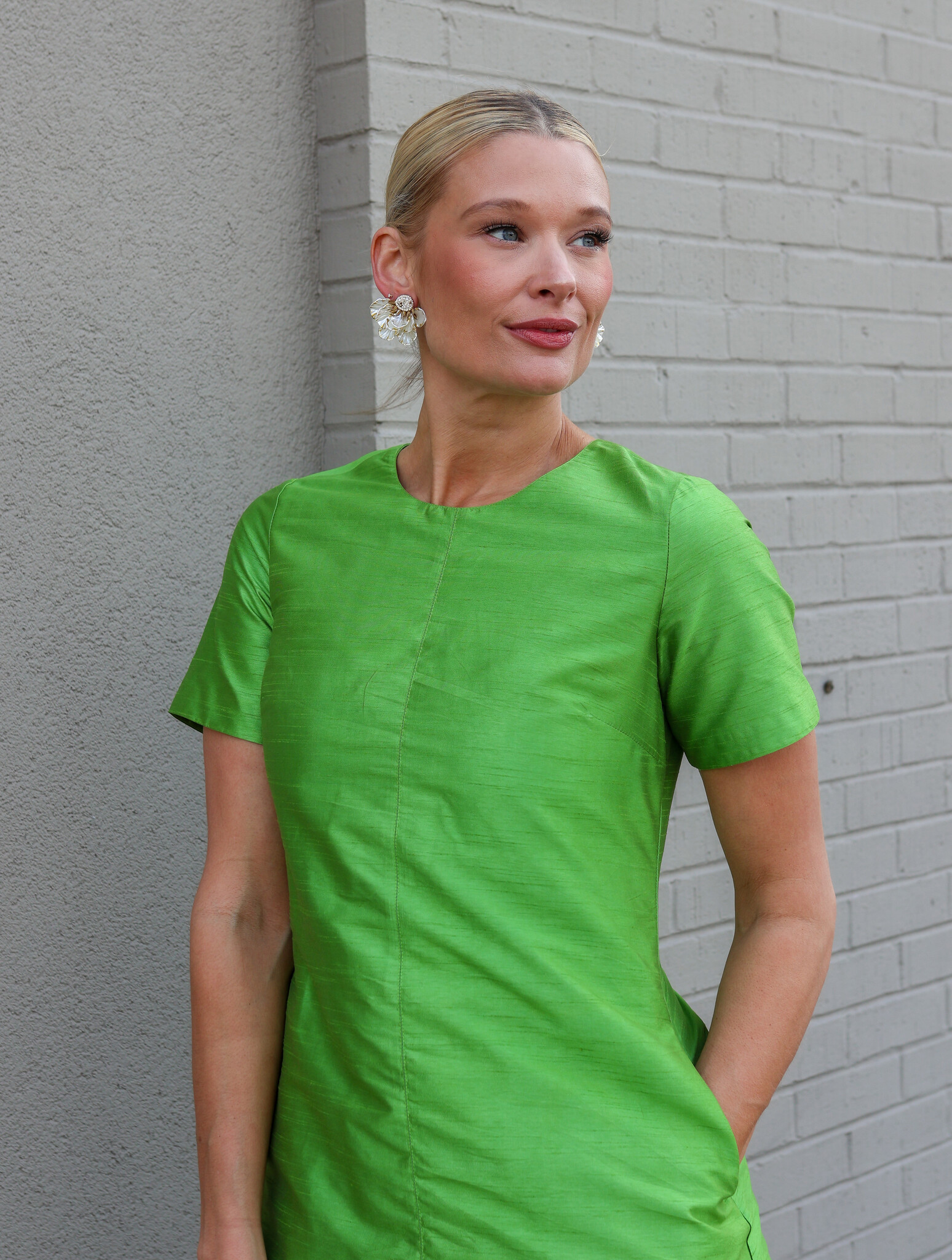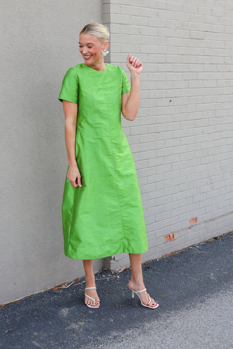 • This dress was meant to be worn for all your Spring events! The silk like appearance makes it the perfect dress for an evening out!