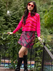 Flaunt your wild side with the Elara Tulip Dress— a sultry, structured silhouette designed for effortless sophistication. Cut from a sateen fabrication, this mini dress offers a sleek, polished look with a slight sheen that elevates the bold leopard print