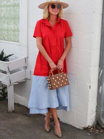 Crafted from lightly structured cotton poplin in a resort-inspired print, it features meticulous double top-stitching and hidden Mother of Pearl buttons for a polished, high-end finish. A timeless silhouette designed for the discerning traveler.