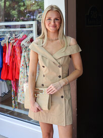 A modern take on the classic blazer dress, the Veronica Dress in Stripe Noir features a sharp lapel collar, double-breasted button closure, and a clean, tailored fit. Structured, stylish, and effortlessly polished with its luxurious linen fabric.