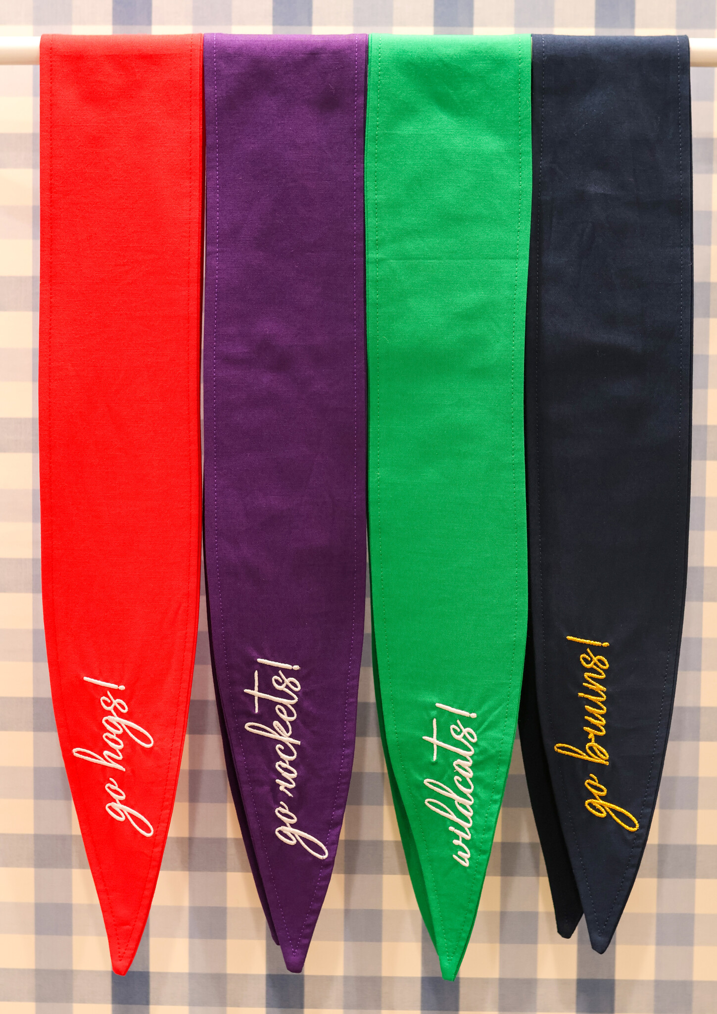 Tie around your neck, on your bag, or in your hair for the perfect gameday accessory!