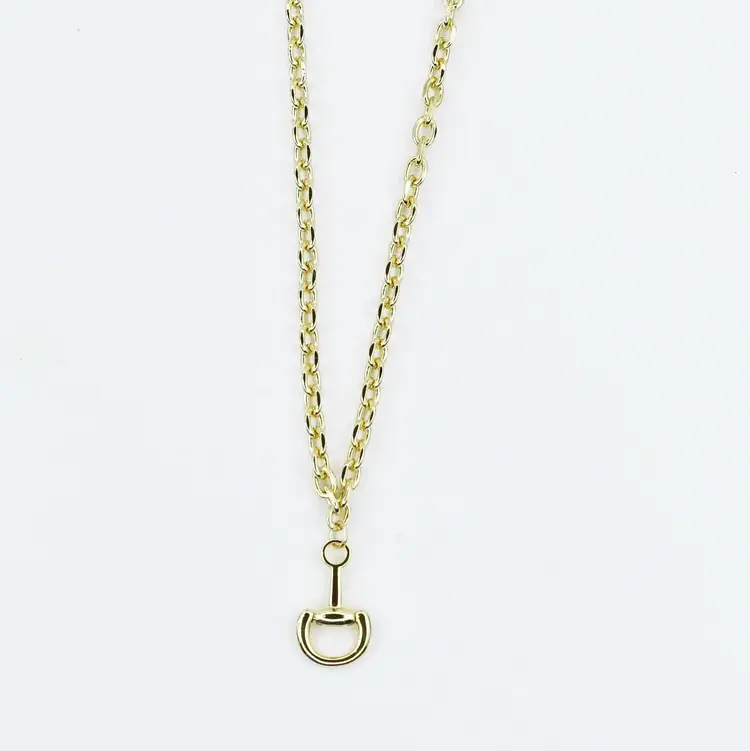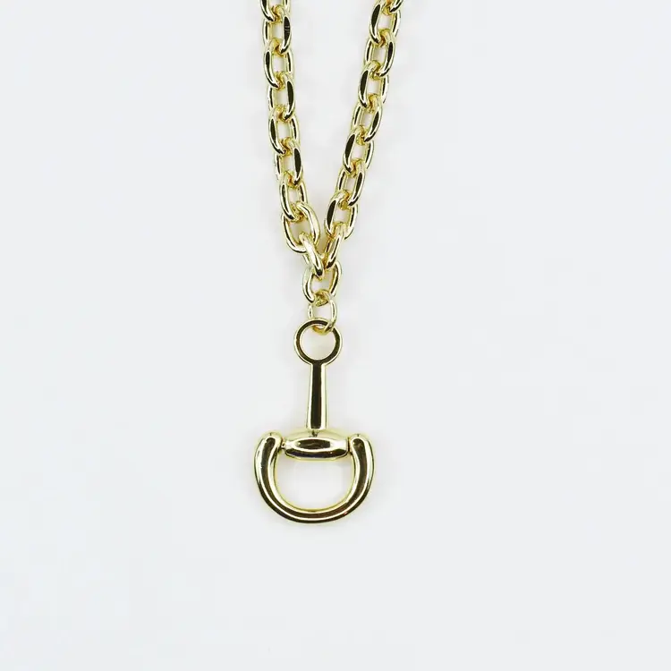 Featuring a chunky golden chain with a horse bit inspired pendant. This statement piece adds instant sophistication and edge to any look.