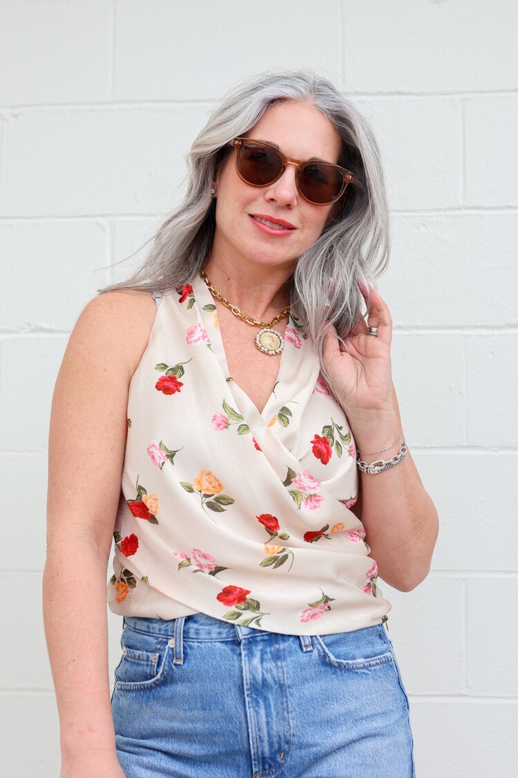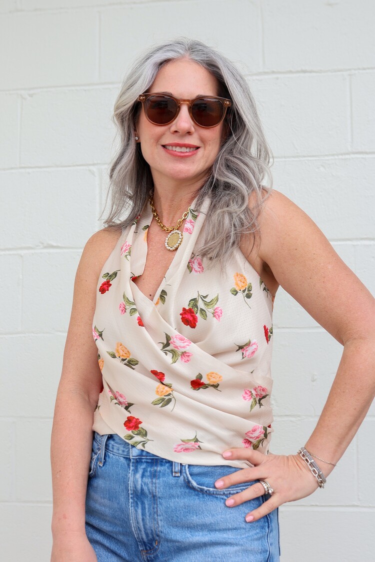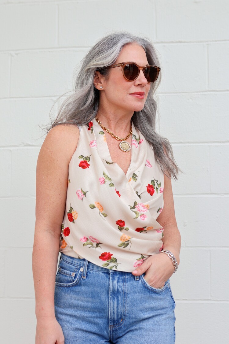 The Granada Top is a draped front blouse, made from a soft crepe de chine. It features our favorite rose print. Pair it with jeans for the ultimate effortless look. 100% Polyester